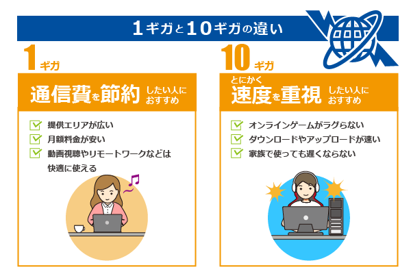 できるだけ速いネット回線が欲しい人は、10ギガプランを選ぶといいでしょう。