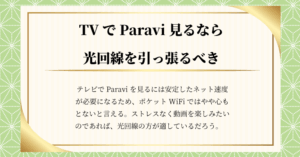 私のこれまでの経験から、Paraviをテレビで見るなら光回線を引くべきだと考えます。