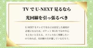 私のこれまでの経験から、U-NEXTをテレビで見るなら光回線を引くべきだと考えます。